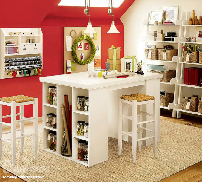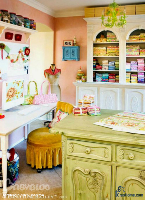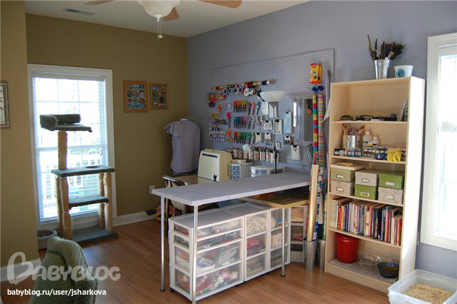 Девочки, сделала себе подборку фотографий мастерских для вдохновения, надеюсь скоро мечту воплотить в жизнь (сделать уголок на кухне)... сейчас имеем: на кухне стеклянный стол раскладной (180*90)- удобен для валяния, т.к. пупырка плотно прилегает к стеклу (если стол намочить) и стол не портится от влаги, полы из керамической плитки подходят для мокрых работ, шерсть храню в икеевских глубоких прозрачных контейнерах (вижу нужный цвет не копаясь), декоры храню в тряпичных ящичках икеевских (типа для хранения белья). Поделитесь, а как у вас (независимо от вида рукоделия)???