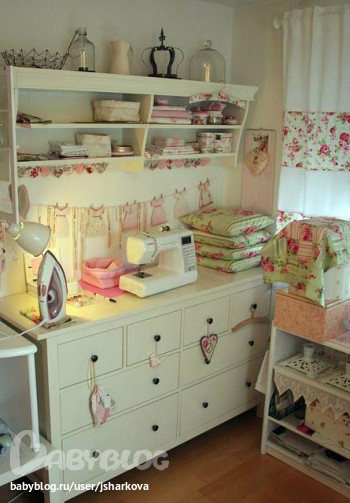 А у меня все совсем печально...Распихано все по-квартире: в шкафах-оверлог и машинка, в диване-тканюшки, в тумбочке-пряжа, в другом шкафу-ленты и бусины, в третьем шкафу-нитки и швейное, а все для мыловарения живет на кухне(тоже в трех местах)...Ужас! Как тоже хочется свой уголок!!!