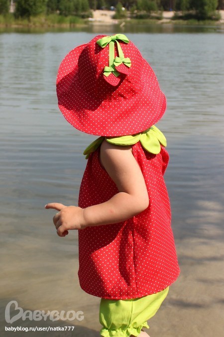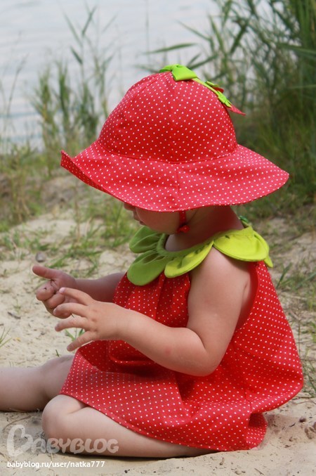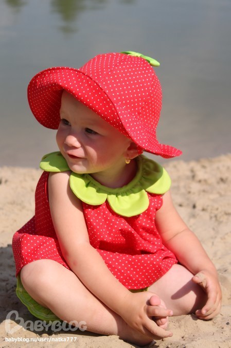 Шитье одежды, выкройки, ремонт одежды, шторы, швейные машины (уже приобретенные)Этот комплект шила специально к купальнику-клубничке. Идея с прошлогодней коллекции Gymboree. Панамка из Ottobre, на завязках, без них все безжалостно срывалось с головы