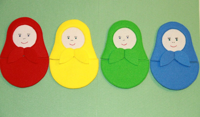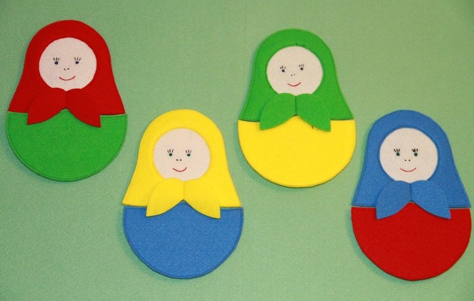 1. Матрешки 10х15 см, выбрала выкройку самой большой из 4 размеров. По этим матрешкам будем изучать цвета и играть в пазлы.