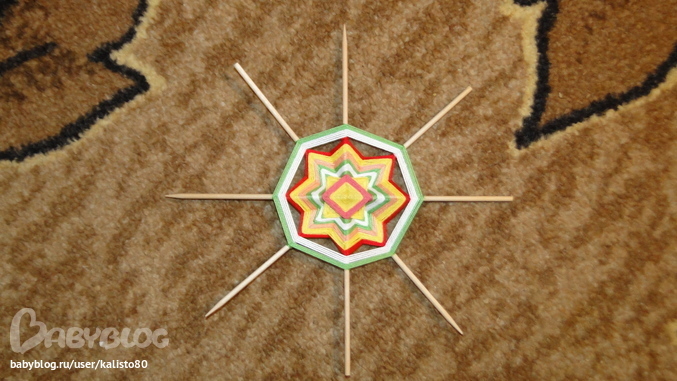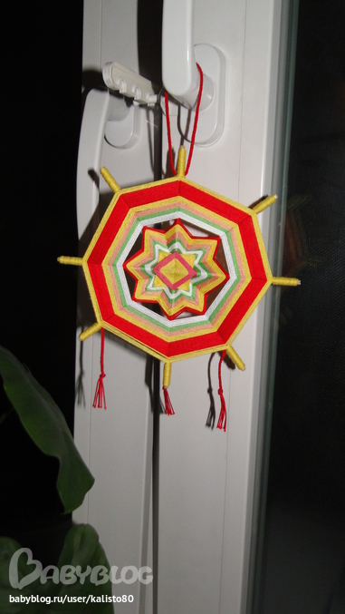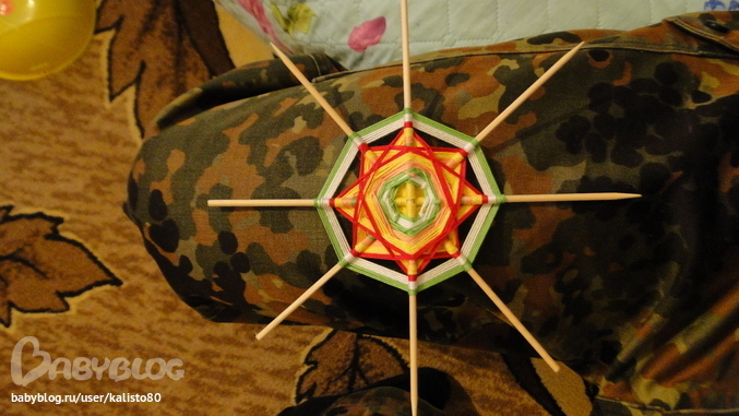Катюша, очень красиво!! Моя первая мандала была из 2-х палочек и то мне казалось, что это очень сложно)) а вы начали сразу со сложного!! Молодцы!! А на первых фото она не доплетенная?