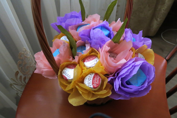Мой первый букет, намучалась) Самым сложным оказалось красиво все вместе в корзинку собрать.