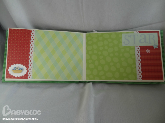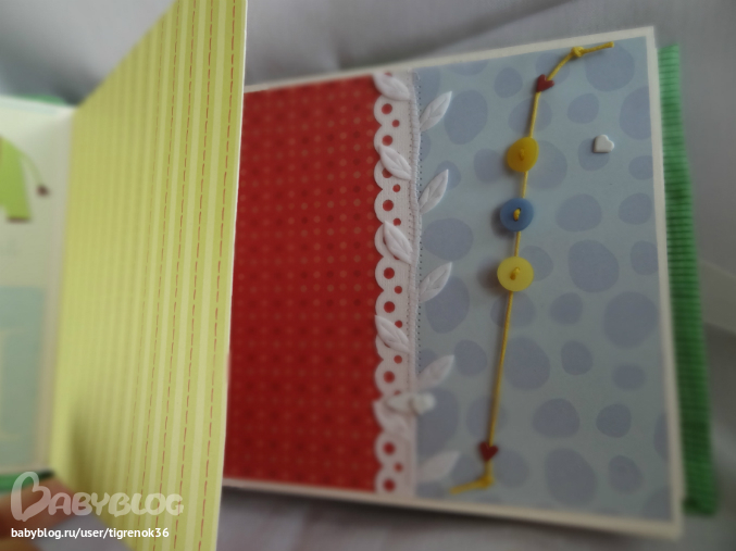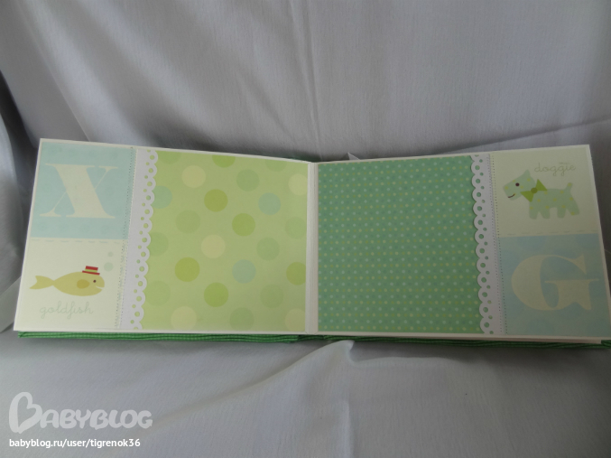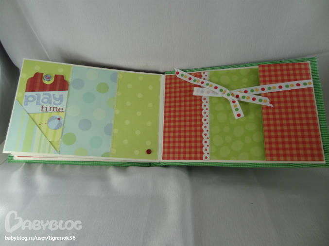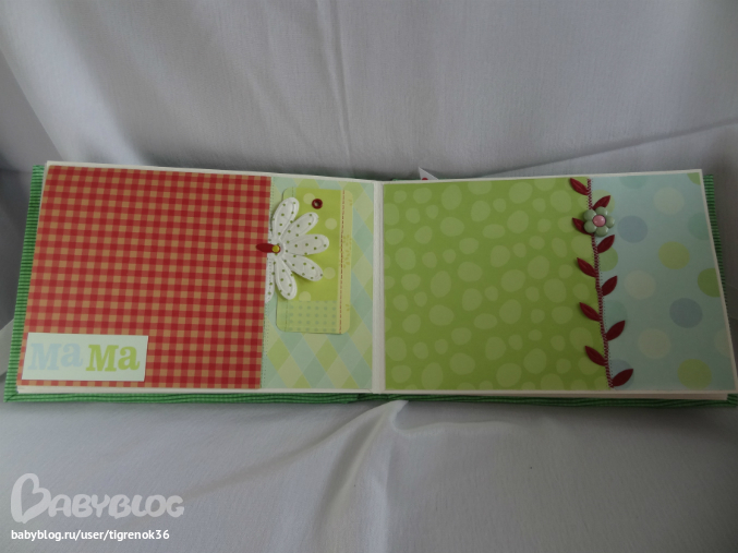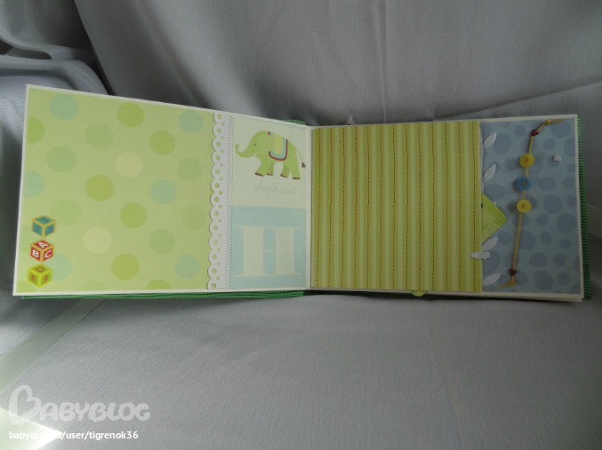 первый разворот. Слева - "книжка", внутри можно разместить ещё 2 фото или записать какую-нибудь историю про малыша
