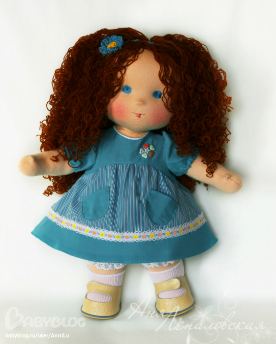 Спасибо. А сколько времени затрачиваете на такую куколку? тут ведь наверно много работы, честно говоря я даже не представляю, у меня терпения точно не хватит. А сколько она см?