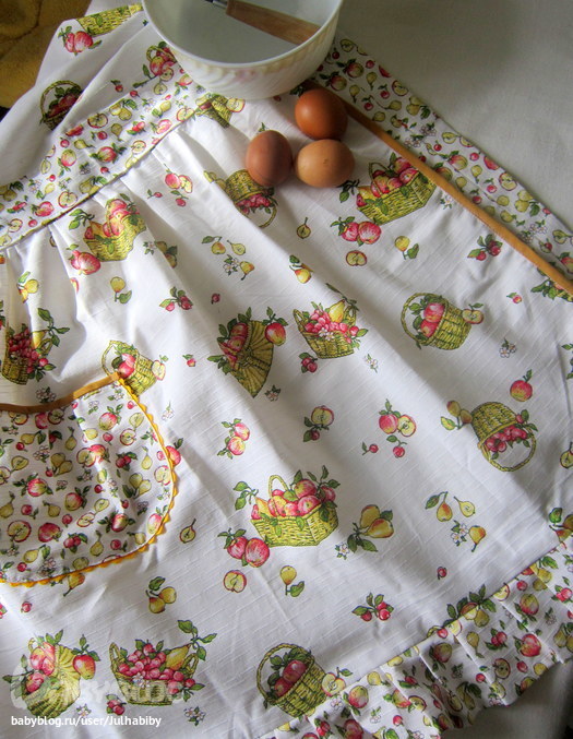 Шитье одежды, выкройки, ремонт одежды, шторы, швейные машины (уже приобретенные)Еще один подарок на 8 марта. Т.к. ткани у меня застряли, пришлось поискать по местным магазинам. Очень даже милая тканька нашлась в ближайшей галантереи. Думала сначала из нее сшить мешочки для сушеных яблок. Но ткани взяла много, поэтому хватило на фартук.