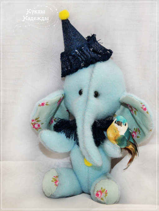 Думала, думала что бы это ему в лапку придумать....., наконец решила, что птичка будет очень кстати - с другом не будет слонёнку одиноко)))