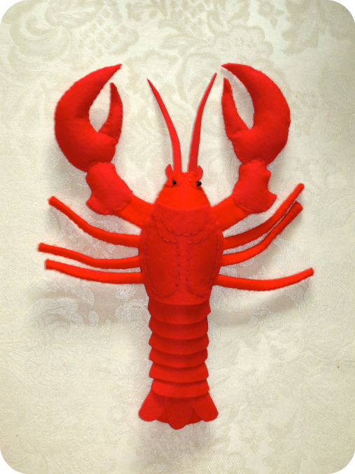 ФетрДля куклы-пакетницы получился из фетра вот такой аппетитный омар.