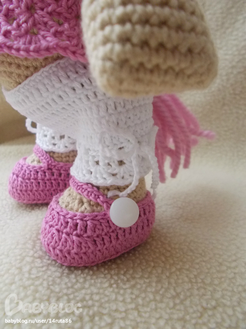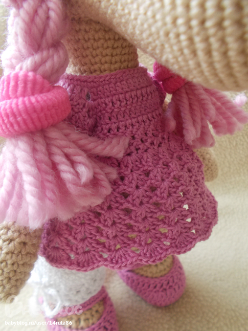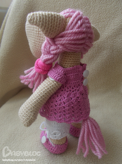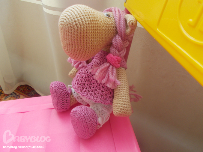 Все сделано вручную. Мими прибыла к нам из страны, где живут Мумми Тролли. Она большая модница и любит привлекать к себе внимание. Голова на нитяном креплении, ручки и ножки на пуговичном, поэтому она может ими двигать и сидеть. Сандалики снимаются, а платье и панталончики снимать не желательно.