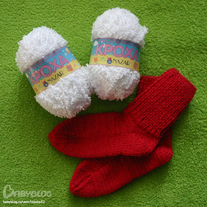 Пряжа "Кроха" - 2 мотка, размер носочков 25-27.