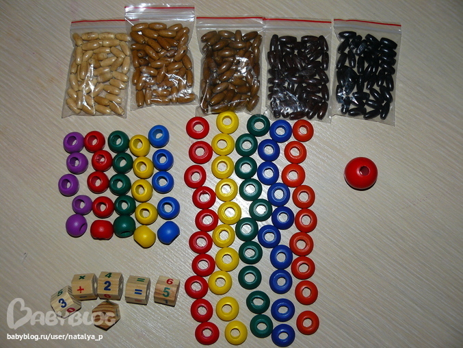 Коллекция разносортных деревянных бусин. Те, что цветные слева, они почти круглые (вид с боку сделала). А вот те, что по центру (которых больше всех), они плоские, как кости на счётах, на торец поставить не могу, чтобы сфоткать.