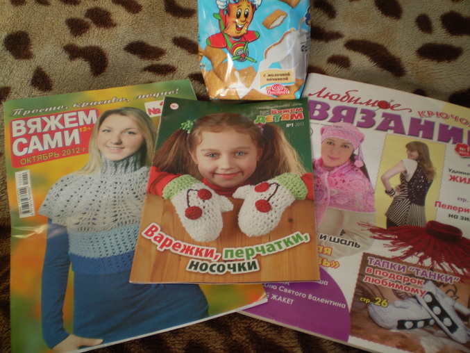 А для меня классная вещь: журналы по вязанию!!! Ну и вкусняшки к чаю для всех)))