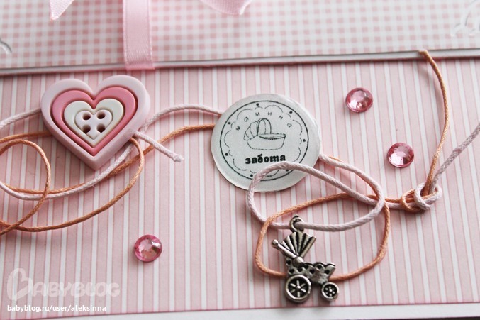 На обложке место для фото 10х10см, минимум украшений (т.к. альбомчик будут носить с собой)