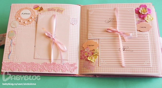 2 разворот: "Я родилась" и фото 1 и 2 месяцев