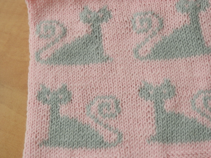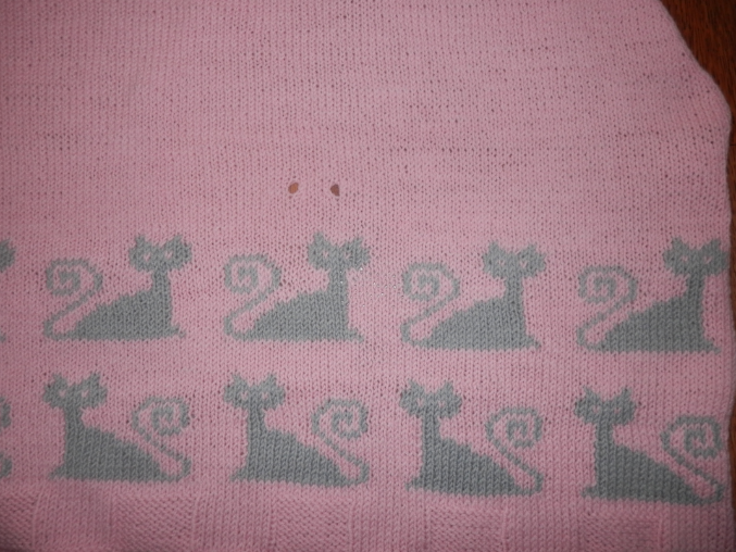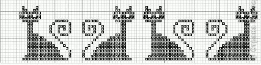 после первого ряда кошек провязала 7 рядов лиц. гладью и аналогично связала второй рад кошек