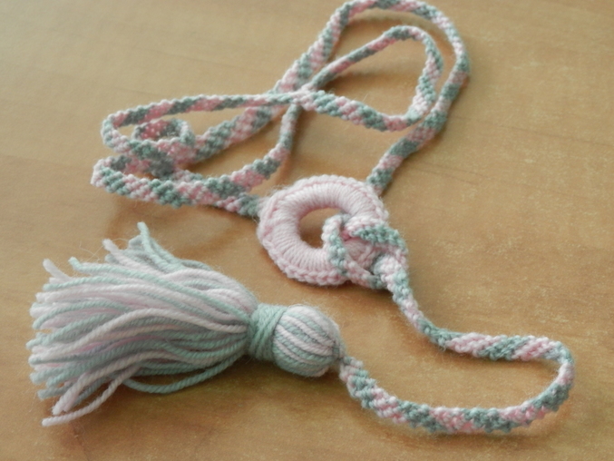 Заосрять внимание на пояске не буду, т.к. к спицам это не имеет ни малейшего отношения. В двух словах: пояс "связан", точнее сплетен как фенечка (воспоминания из юности), на одном конце сделала кисточку, на другом кольцо 2,5 см обвязала крючком.
