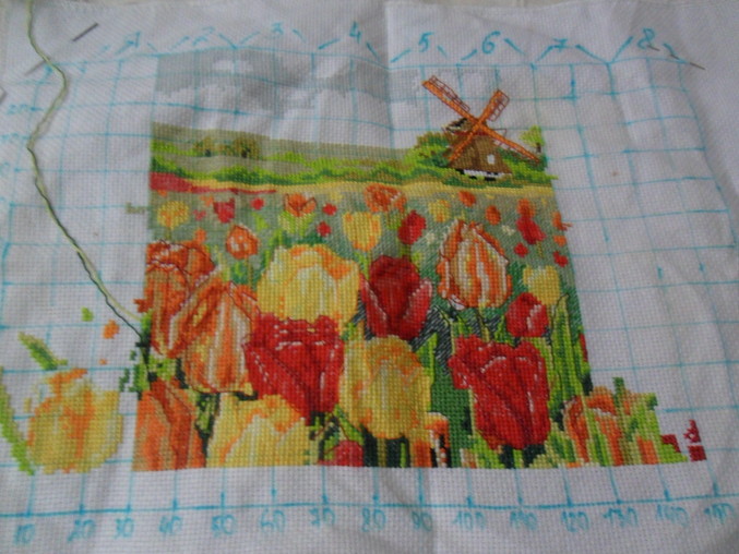 Вот они ТЮЛЬПАНЫ!!!!!В скором времени дошьются и понесу в багетку!!!!!!Окончательный вариант потом сфоткаю и покажу!!!
