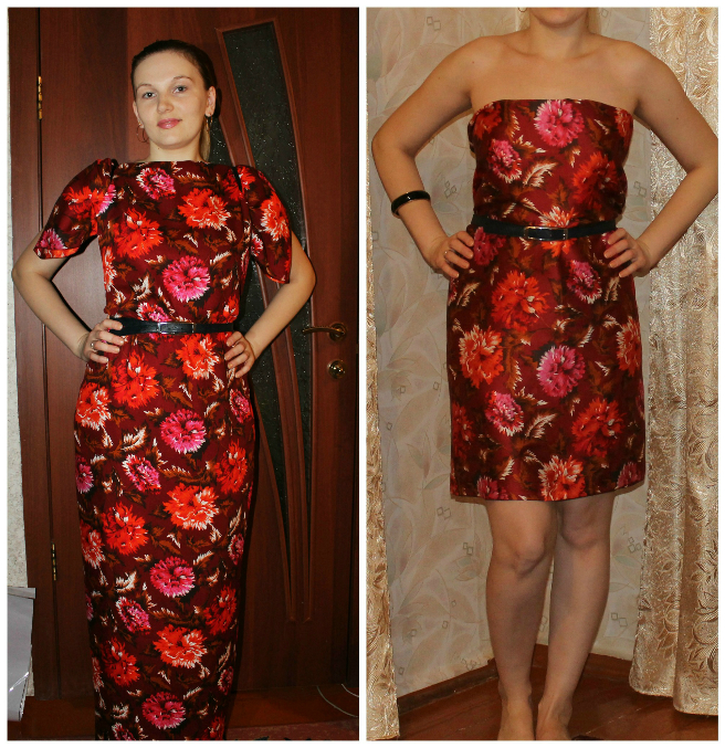 А мне кажется если из красного сшить платье с рукавом, но только до середины колена, то будет просто ультрамодно. А тёмная - однозначно длинное платье, либо комбинезон.
