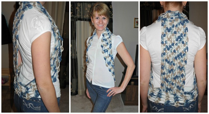Своеобразная вещица :) Но если брать во внимание твой совсем небольшой опыт и качество пряжи - очень достойно! Твори дальше, у тебя хорошо получается!