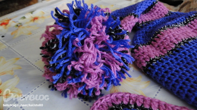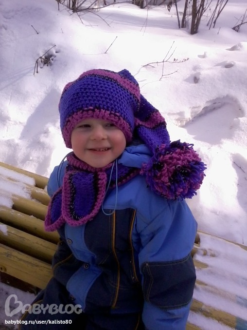 шапочка хороша тем,что я внутри еще флис пришила) у меня сынишка сильно головой не мотает, но у нас еще холодно, ветер, так что думаю ближе в апреле начнем ее носить побольше)))))