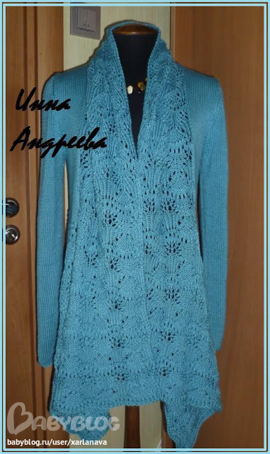 по мне так кофта с уменьшинвми передними полочками связана и отдельно шарф, и сшить