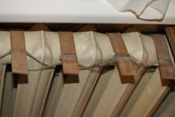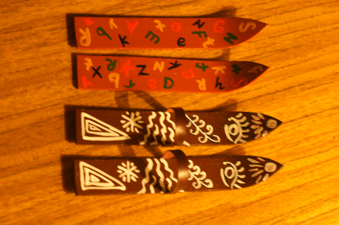 сорри за ободранную стену) в общем, линейка вставляется в щель за батареей, сгибается и закрепляется. сгибать медленно и плавно, т.к. оттрескиваются щепки! я дала просохнуть сутки. потом канцелярский нож+наждачка - придаем форму. Красим акриловой краской + финишный лак. Рисунки я сама рисовала, но можно задекупажить, я как-то сразу об этом не подумала. Крепления - кожа на суперклей.