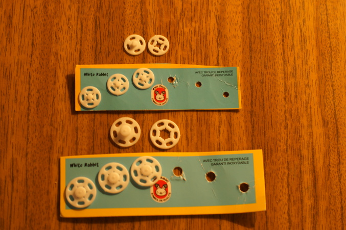 Это пришивные кнопки, так и называются. пластиковые. Есть металлические, но с ними посложнее - надо точно подобрать толщину шпажки под отверстие. пластиковые можно обрезать. Но, даже если не обрезать, то шпажку можно утолщить, обмотав ниткой с пва.