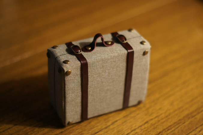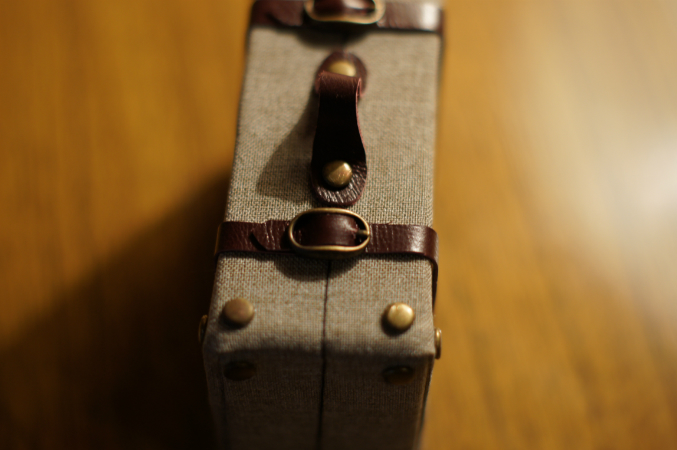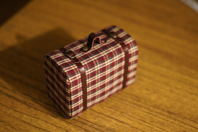 В основе - картонная самодельная коробка, с обрезками тканей для утяжеления, либо вырезать из пенопласта, это уж кто с чем дружит. Оббивка тканевая, либо простроченная на машинке (первый чемодан), либо просто ткань клеится клеевым пистолетом (клетчатый). кожаные ремни, самое сложное - купить маленькие пряжки, они продаются в магазинах тканей, заклепки тоже продаются, клеим клеевым пистолетом (суперклеем нельзя, растекается пятном вокруг заклепки).
