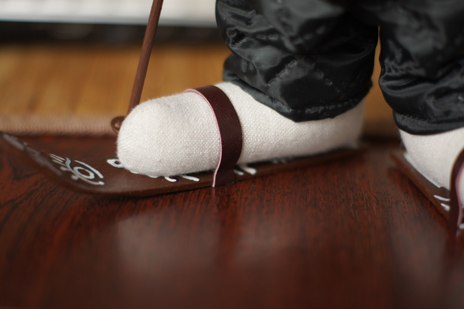 Лыжи делаются из линеек, простых деревянных ученических линеек. Длиной минимум 10 см. Сначала их нужно поварить в простой воде минут 20, и пока они мокрые и теплые, согнуть и закрепить. Все полтора мастер-класса по лыжам, которые я нашла, рекомендовали закрепить линейки на чем-то округлом, скалке, бутылке, скотчем и дать высохнуть с недельку, т.к. под скотч плохо заходит воздух и если плотно замотать, то они там могут и заплесневеть. Я нашла способ более простой и лыжи высохли очень быстро, т.к. доступ теплого воздуха был напрямую :)