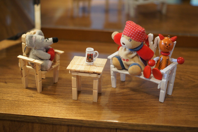 Ну на закуску - кукольная мебель из деревянных прищепок, покажу. Мастер-классов нет, но они тут и не нужны. Клеится все суперклеем, красится, лачится. Все как обычно :) Только фантазию включай! :)