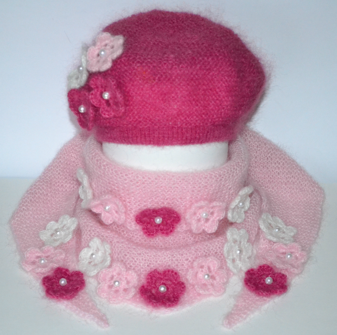 Участвую с комплектом бактус и берет, ниточки у меня ALize Kid Mohair (62% Кид мохер /38%Полиамид)25гр/250м, спицы №2,5 и №4
