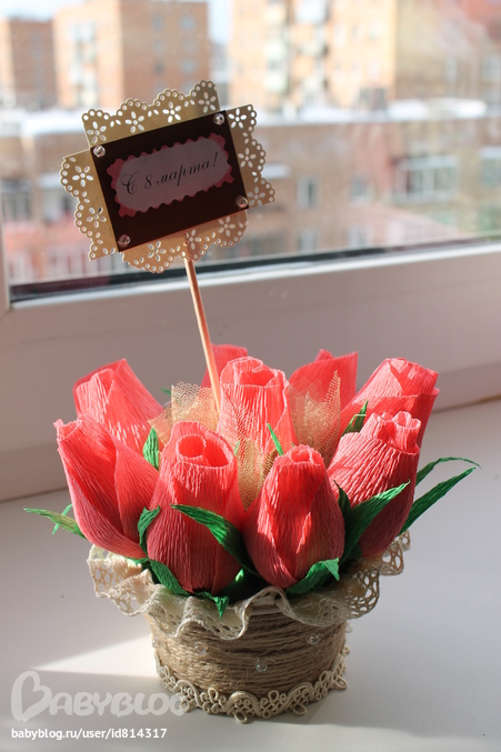 Надежда в Рукоделие 13 лет Мои первые сладкие букеты! В феврале задумала сделать подарки близким. Вот результат) Оцените! Посмотрите еще 20 записей на эту тему Отменить Ответить marina-maxx Надежда, очень нравится миник с розовыми бутонами. Беру на заметку))) 21.03.2013 Ответить Ируська красота!!!!!!!!!! 21.03.2013 Ответить Екатерина Ух ты!!! Красотища!!!! А назаказ делаете? Уж очень розочки понравились 21.03.2013 Ответить Надежда Могу сделать)) А куда потом доставлять? 21.03.2013 Ответить Девочки, нужна ваша помощь Сарафан для девочки Чаты Беременных Выберите чат: Январята-2026 Февралята-2026 Мартята-2026 Апрелята-2026 Майчата-2026 Июнята-2026 Июлята-2026 Августята-2026