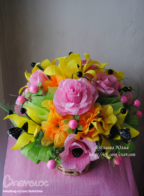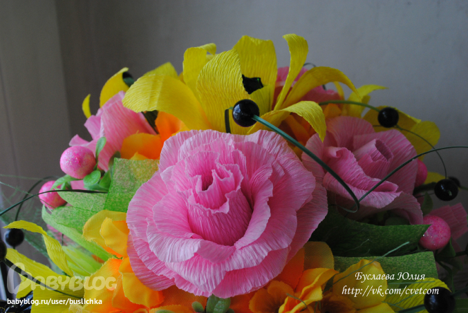 (но искус.цветы надо было на пару подержать, что бы лепестки выпрямились.)