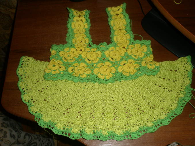 Ураа получилось вставить фото))) Померяля я на дочку что-то длинновато получается, довяжу до конца посмотрю может кокетку перевяжу, уберу один ряд цветочков))