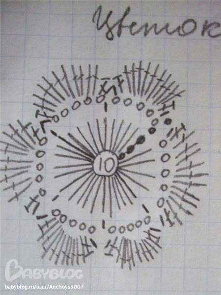 Моя схема обвязки цветочков, художник их меня конечно еще тот, будет что то непонятно спрашивайте)) Цветочки вязала безотрывно, вот тут есть схема
