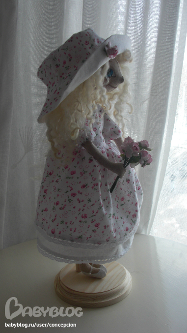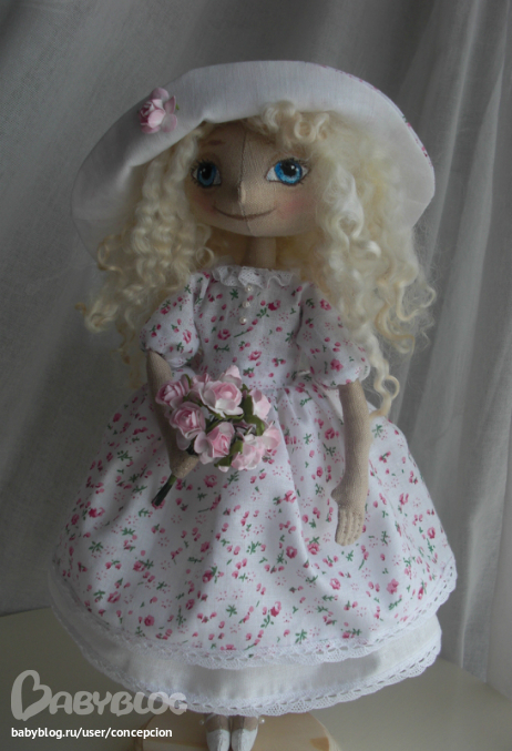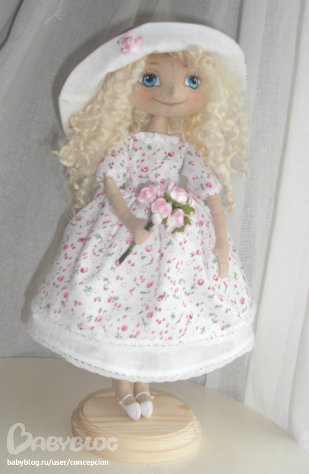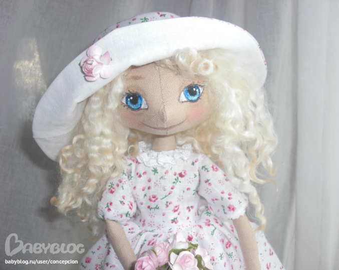 Машуля,такая волшебная куколка получилась!!!вся прямо воздушная и нежная!!!Скорее даже невесомая!!!шляпка,прическа, глазки-все гармонирует!!!!)