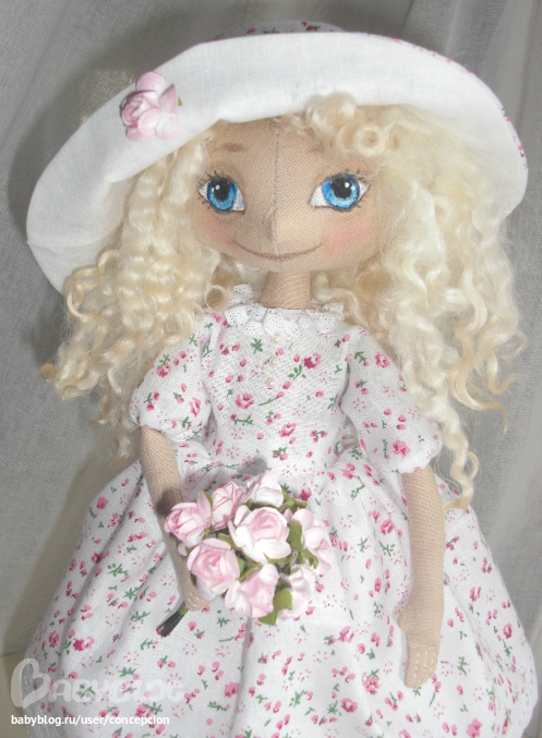 Маш,ну что тебе сказать?Супер куколка получилась,миленькая такая,нежная,и тканюшка очень красивая.все мне в ней нравится.это просто чудо!