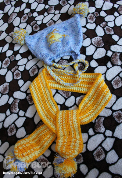 Связала сыну к весенней шапочке шарф крючком. Крючком первый раз вяжу вещь (а не обработку края). Результатом я очень довольна!! Как вам? Не девчачий шарф получился?