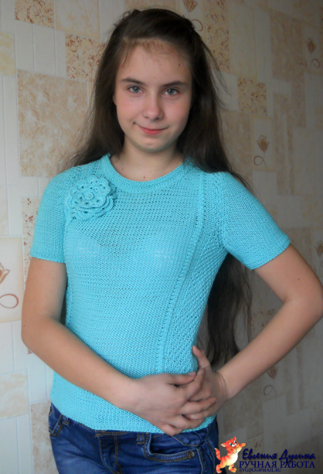В роли модели - дочь, но джемпер не для нее, а для взрослой девушки Полины.