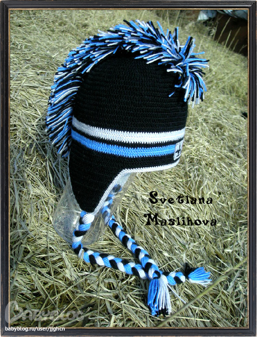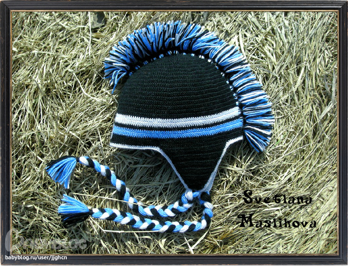 Идея шапки стырена, не могу вставить ссылку на сайт, она пропадает куда то, но там куча всяких шапок с ирокезом. Обе шапки вязала из Нако бамбино. Мужу прям ооочень понравилась шапка с ирокезом, даже принял участие в "пришпандоривании" этого ирокеза к шапке