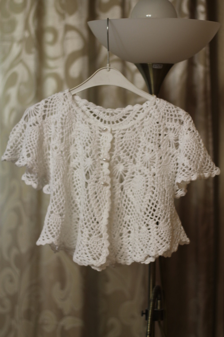 До 23.05 вряд ли успею. Мне еще платье из онлайна закончить надо. Еще лежит недовязанное болеро (тоже из онлайна). С тем болеро, что я вяжа та же история - если взять не очень тонкие нитки, то получается на взрослого. Я взяла Violet и то на младшую большевато получается. Здесь хоть схему можно немного изменить.