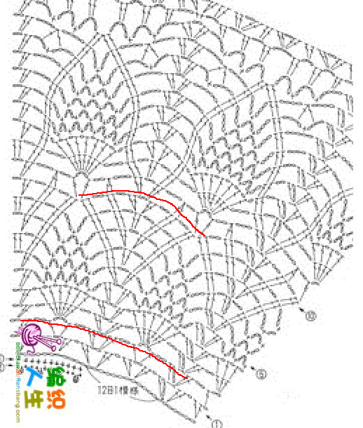 Насколько я поняла по фотографии обвязка по низу связана по второй схеме в пределах, которые я отметила красным. И в самом низу обвязаны арочками (по-моему там 2 ст/н, 2 вп и еще 2 ст/н).