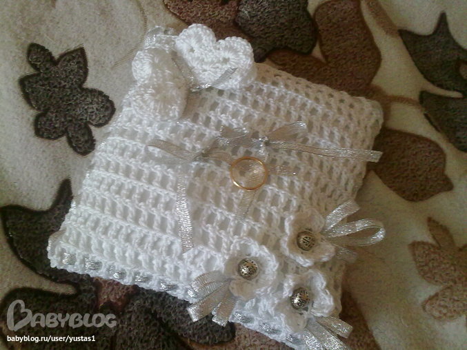 Оксана в Рукоделие 13 лет Подушечка для колец. Связала в подарок девушке на свадьбу. Посмотрите еще 20 записей на эту тему Отменить Ответить Кристина очень нежно получилось))) 23.03.2013 Ответить Оксана Спасибо! 23.03.2013 Ответить Синий кот Хочу поблагодарить! Чаты Беременных Выберите чат: Январята-2026 Февралята-2026 Мартята-2026 Апрелята-2026 Майчата-2026 Июнята-2026 Июлята-2026 Августята-2026