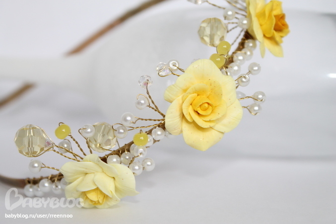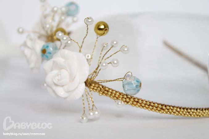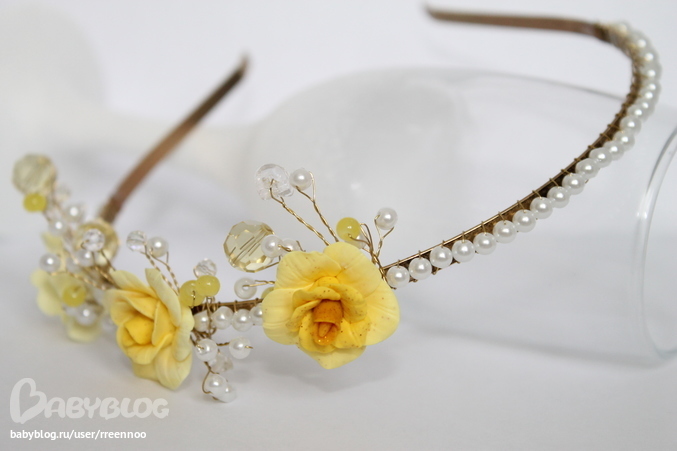 Бижутерия для слингомам. Слингобусы. Грызунки.Подойдет для девочки, девушки. Полностью ручная работа. Цветы из запекаемой глины, поэтому ободочек не боится влаги. Использован стекляный жемчуг, бусины, чешский бисер, чешские бусины. Очень красиво переливается на солнце.