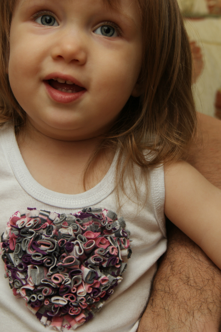 Делала не как по всем известному мастерклассу. Я не резала майку, а просто пришивала сердечко по краю.