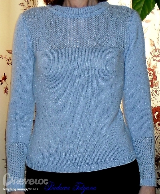 Связала пуловер.Пряжа Ярн Арт Саммер,расход 400 гр.Качество пряжи ухудшилось,много узелков в мотке и слоиться стала.А после стирки ещё и сюрприз преподнесла ,села на 4 см,пришлось перевязвать.
