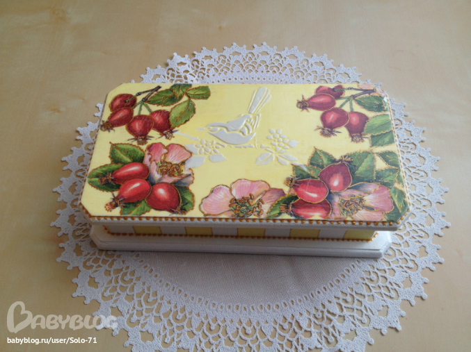 А это шкатулка выела мне весь мозг и доделывала я ее уже лишь бы хоть как то доделать, хотя сама салфетка мне оооочень нравится, а вот шкатулка ниочем.