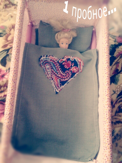 Вообщем начало конечно положено-сегодня под руководством свекрови пошила для кукол дочери одяло,подушку и простыню в кроватку!Первый опыт так сказать)