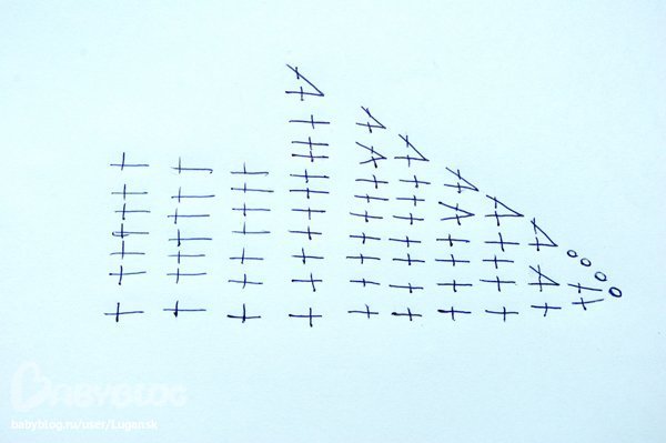 а я начинала себе тунику этими ярусами, да что то так и не поняла, как из под яруса ярус выходит? где он прицепляется???
