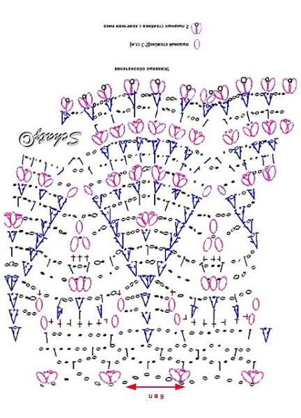 Вот ещё схемы может пригодятся,на первой показано,где ярусы цеплять, а рппорт равен 16 в.п.(я вязала по 1 схеме).