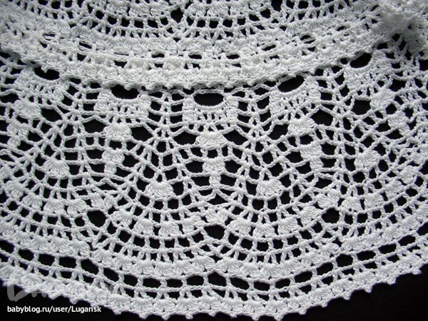 У меня пока только два волана, забросила вязание, шью дочке летние наряды:) Длина одного волана 12 см, ниточки Ирис ПТК им. Кирова. Верх обвязывала, как последний ряд в схеме волана